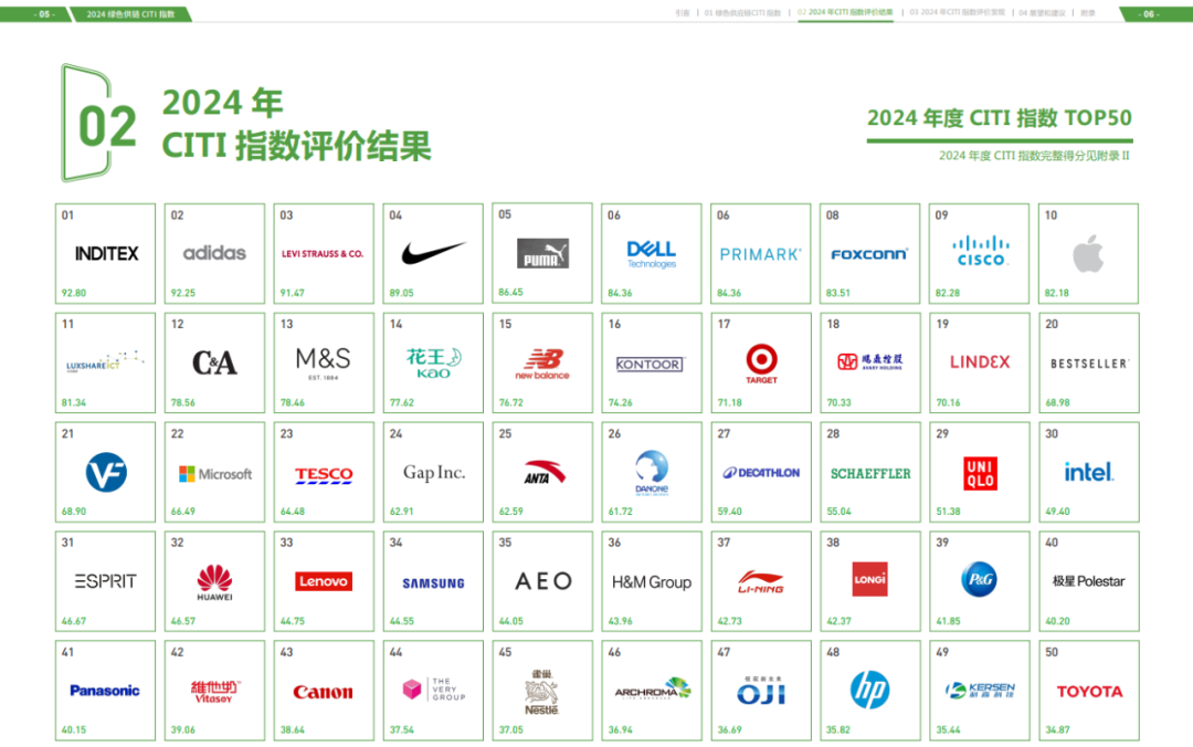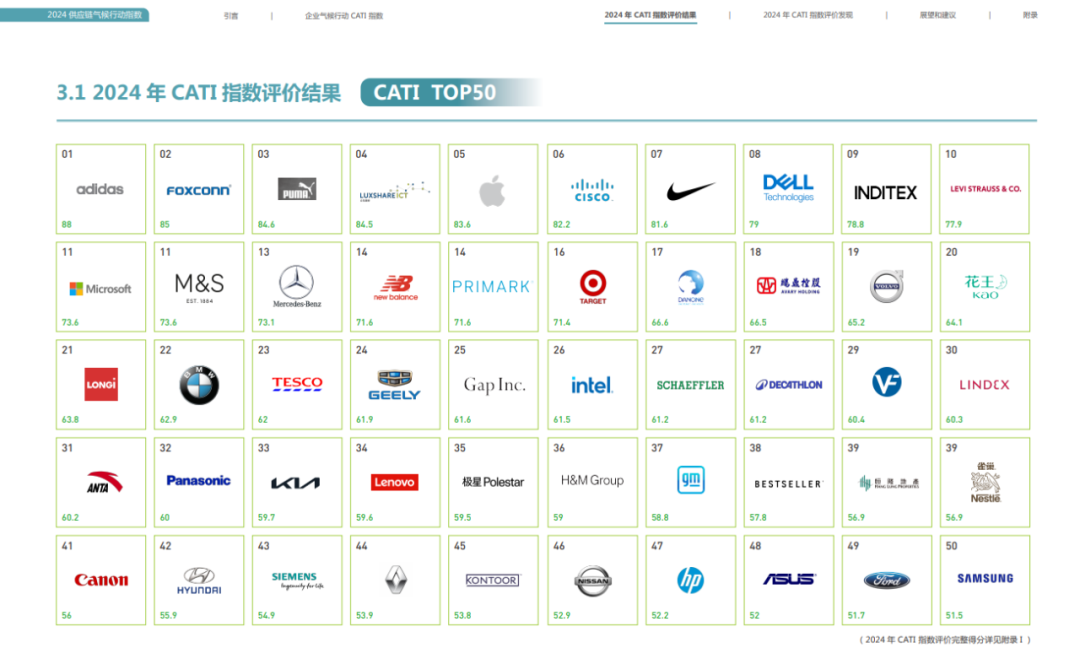 2024年,IPE全面升級CITI指數(shù)和CATI指數(shù)。升級后的CITI指數(shù)重點關(guān)注供應(yīng)鏈合作,從管理機制、合規(guī)與整改、資源消耗與污染物排放、能源使用與應(yīng)對氣候變化、利益方綠色選擇五個維度對企業(yè)的綠色供應(yīng)鏈管理開展量化評價;CATI指數(shù)重點完善產(chǎn)品碳足跡披露和價值鏈減排相關(guān)指標(biāo),從治理機制、測算披露、碳目標(biāo)設(shè)定、碳目標(biāo)績效和減排行動五個維度對企業(yè)在氣候治理方面的行動開展動態(tài)評價。