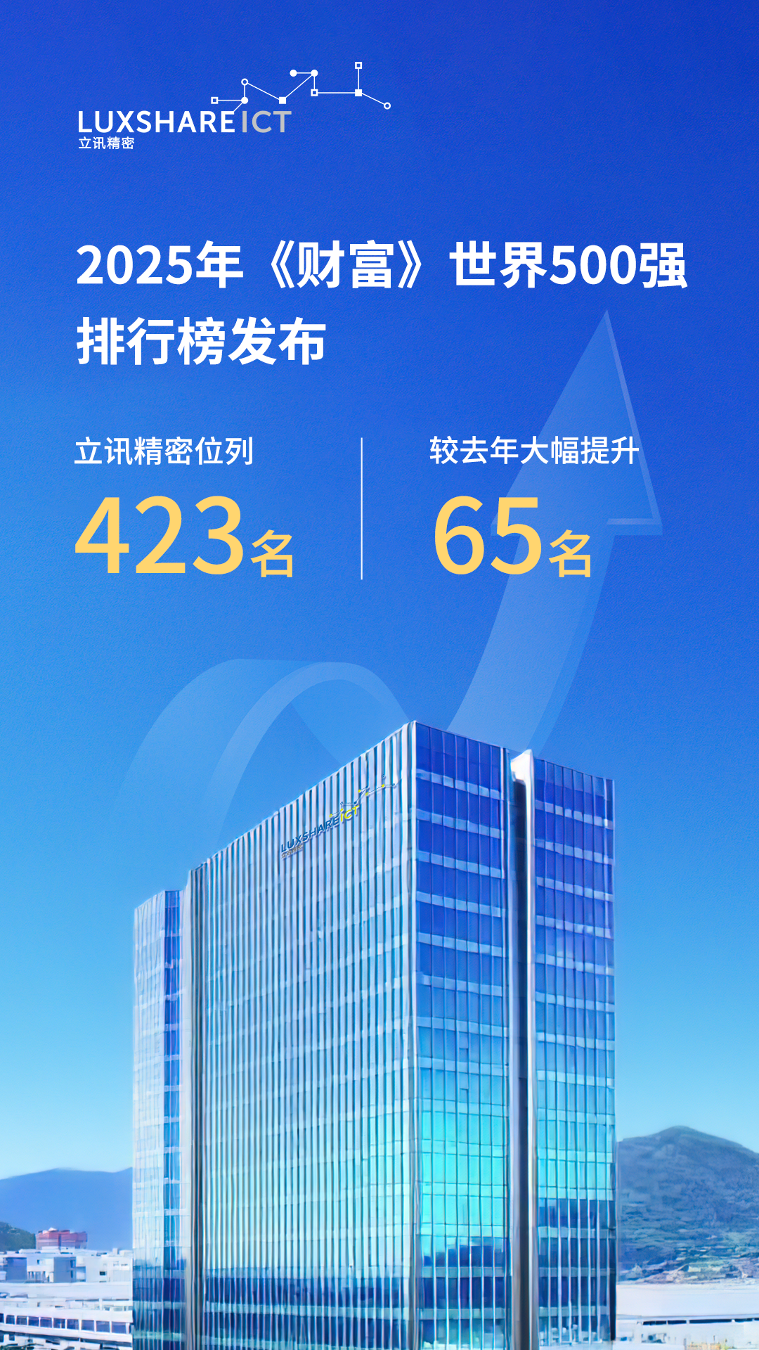 北京時間7月29日,2025年度《財富》世界500強(qiáng)排行榜正式發(fā)布,立訊精密(股票代碼:002475)位列第423名,較去年大幅提升了65名,取得入選以來最高排名。作為衡量全球大型企業(yè)體量的權(quán)威標(biāo)準(zhǔn),《財富》世界500強(qiáng)榜單也反映了全球產(chǎn)業(yè)格局的最新動態(tài)。