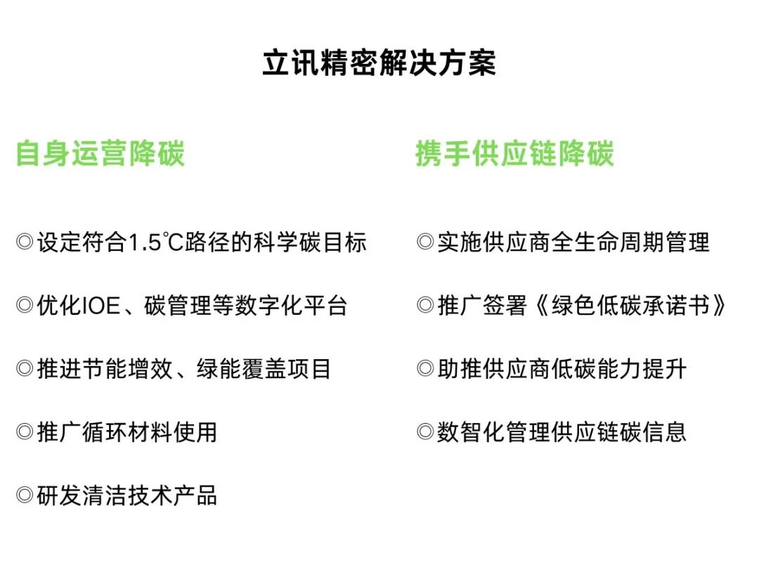 面對(duì)日趨嚴(yán)格的氣候合規(guī)要求及供應(yīng)鏈碳核算復(fù)雜、轉(zhuǎn)型資源受限與企業(yè)自主轉(zhuǎn)型意識(shí)薄弱等挑戰(zhàn),立訊精密在科學(xué)碳目標(biāo)與集團(tuán)碳中和路線圖指引下,依托數(shù)字化管理工具(綠色供應(yīng)鏈管理系統(tǒng))與信息披露平臺(tái)(IPE平臺(tái)),持續(xù)優(yōu)化供應(yīng)商低碳管理體系,并以自身實(shí)踐為供應(yīng)鏈提供示范范式,共享經(jīng)驗(yàn)與成果,夯實(shí)供應(yīng)鏈去碳化基礎(chǔ)。